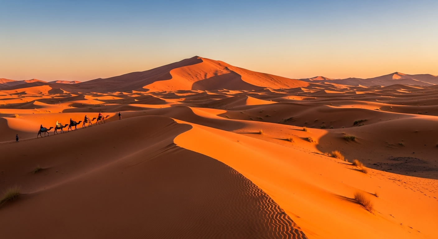 Step into a world of golden dunes and ancient traditions. Discover Merzouga, the gateway to Morocco's most breathtaking desert landscapes and starlit nights.